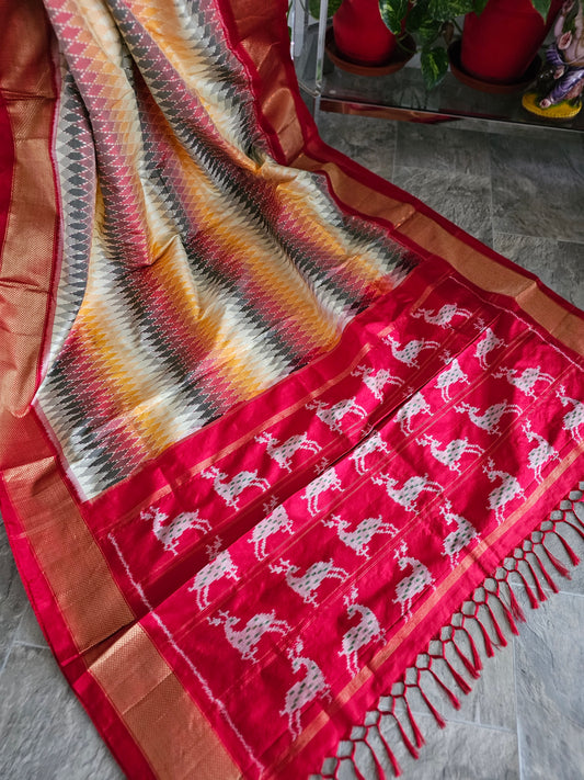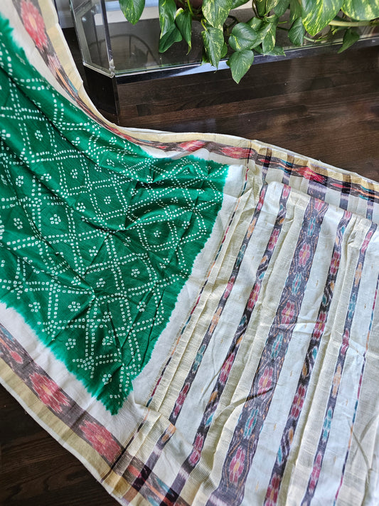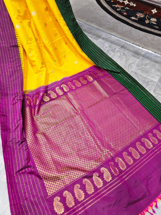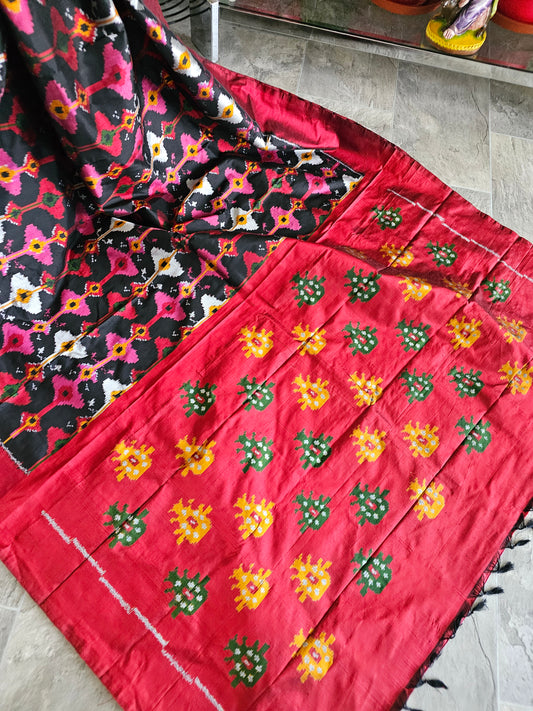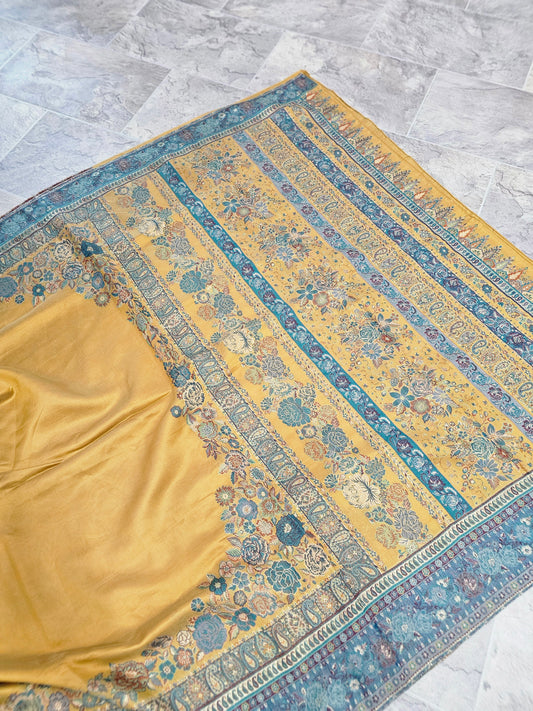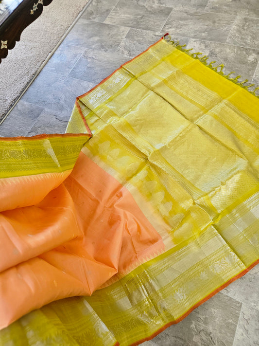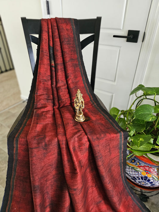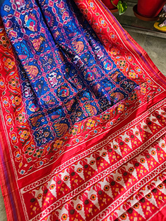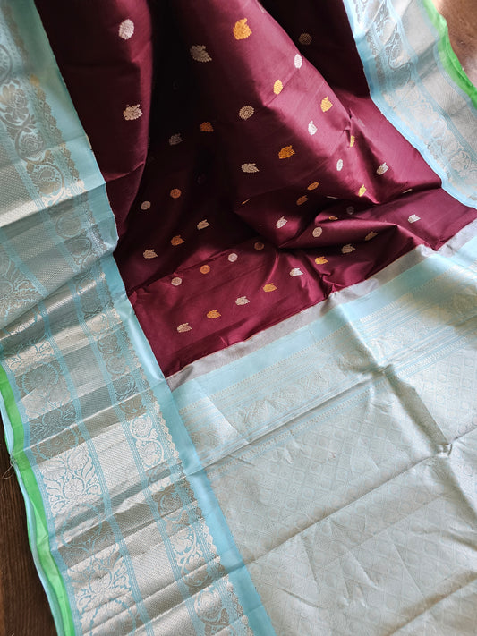 Pure Silk. - Handloom - Dark Peacock blue with rust orange