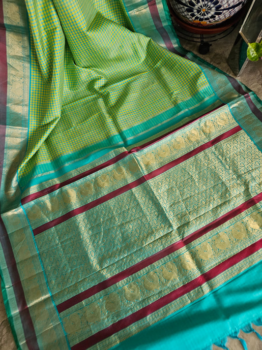 Pure Kanchi pattu - Sea Blue with sea green shade