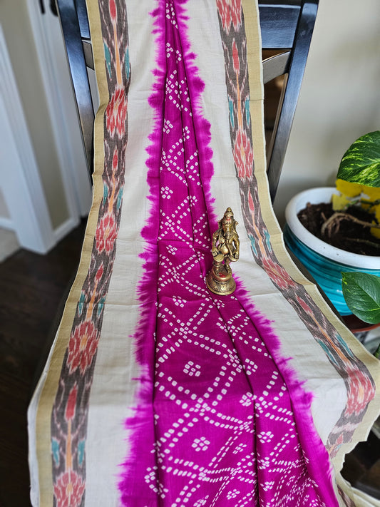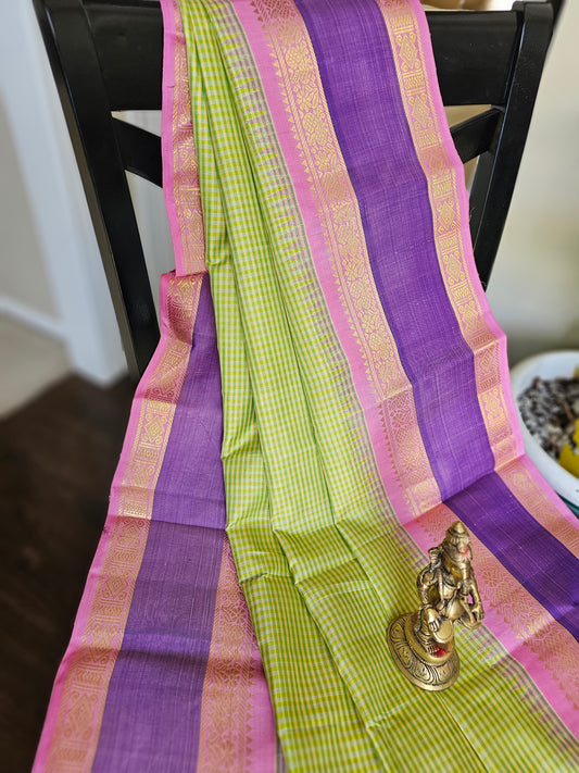 Pure Gadwal Silk - Lavender with Rosy Pink - No Zari