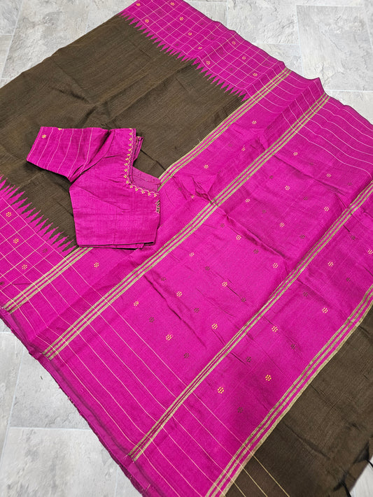 Arani pattu - Honey Brown and Dar Coffee Brown - No Zari